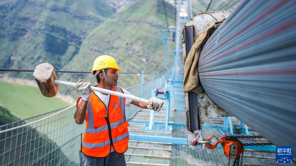 貴州公路集團工人在納晴高速牂牁江大橋進(jìn)行施工(6月25日攝)。