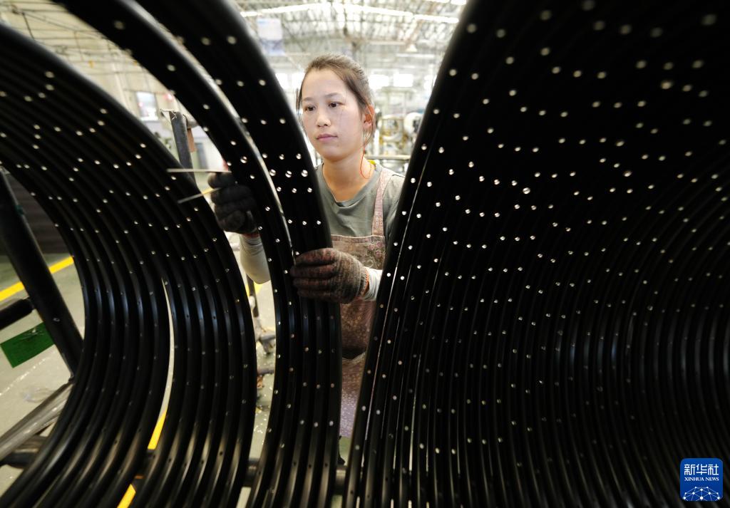 6月25日,工人在唐山市蘆臺經(jīng)濟開(kāi)發(fā)區一家自行車(chē)配件企業(yè)的生產(chǎn)車(chē)間工作。