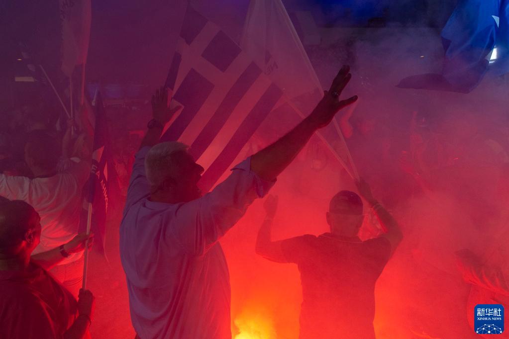6月25日,希臘新民主黨支持者在雅典慶祝該黨派贏(yíng)得選舉。