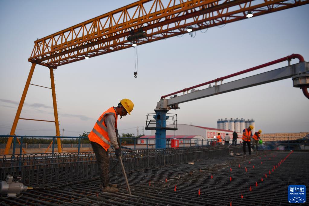 6月25日,中鐵二十局施工人員在位于延安市洛川縣的西延高鐵XYZQ-8標段制梁廠(chǎng)作業(yè)。