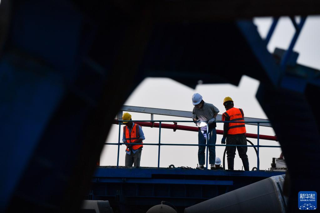 6月25日,中鐵二十局施工人員在位于延安市洛川縣的西延高鐵XYZQ-8標段制梁廠(chǎng)作業(yè)。
