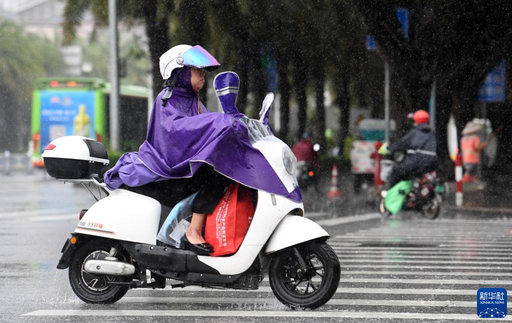 6月26日,在廣西南寧市濱湖路,市民冒雨出行。