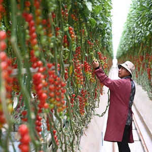 近年來(lái),地處祁連山北麓、河西走廊中段的甘肅省張掖市民樂(lè )縣充分挖掘戈壁農業(yè)資源潛力,大力發(fā)展節水農業(yè)、旱作農業(yè)、戈壁生態(tài)農業(yè),建設百億級現代絲路寒旱農業(yè)智能溫室產(chǎn)業(yè)園。截至目前,該縣已建成投用50萬(wàn)平方米的高標準智能玻璃溫室,種植的串收番茄銷(xiāo)往我國華東、華南等區域。