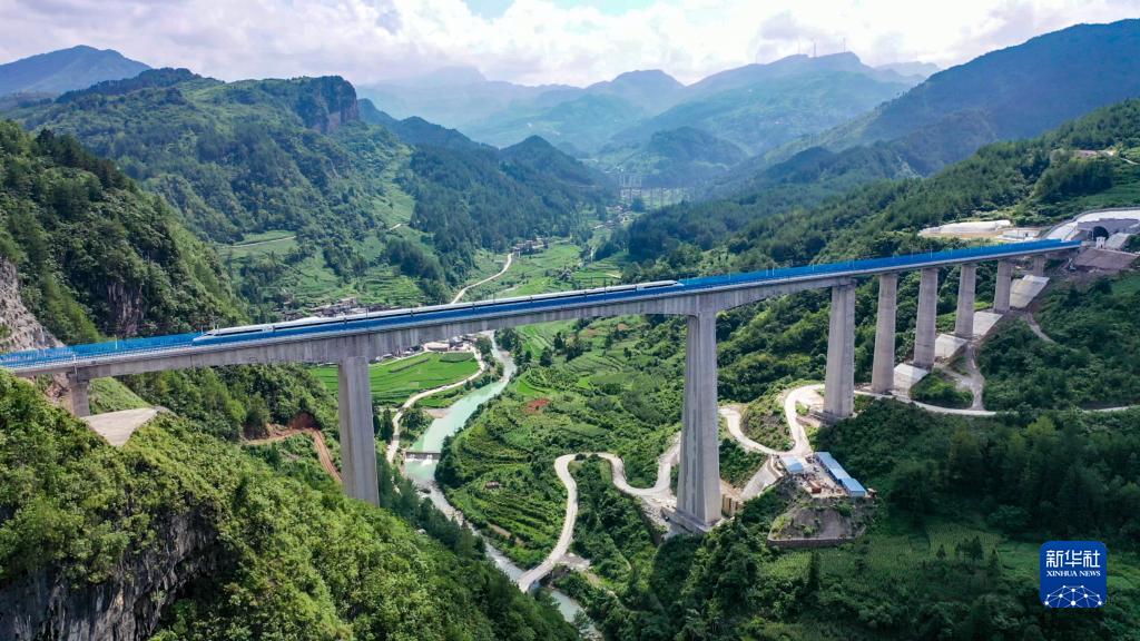 6月26日,試驗列車(chē)經(jīng)過(guò)貴州貴定縣境內的桐子園雙線(xiàn)特大橋。