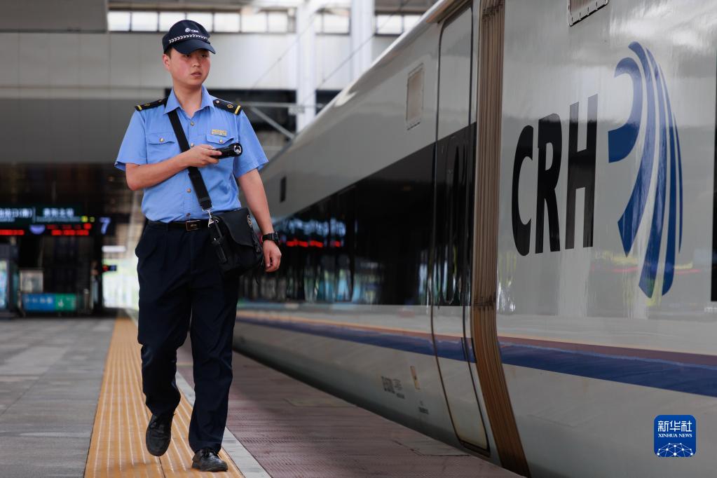 6月26日,隨車(chē)檢車(chē)員在檢查試驗列車(chē)。