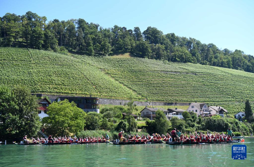 6月25日,在瑞士埃格利紹,人們參加賽龍舟活動(dòng)。
