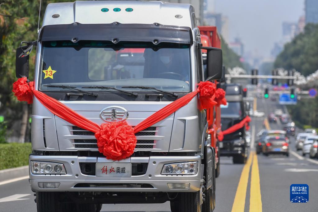 新華全媒+丨70年7代車(chē)——從解放卡車(chē)“七世同堂”巡游回望“車(chē)輪滾滾”舊時(shí)光