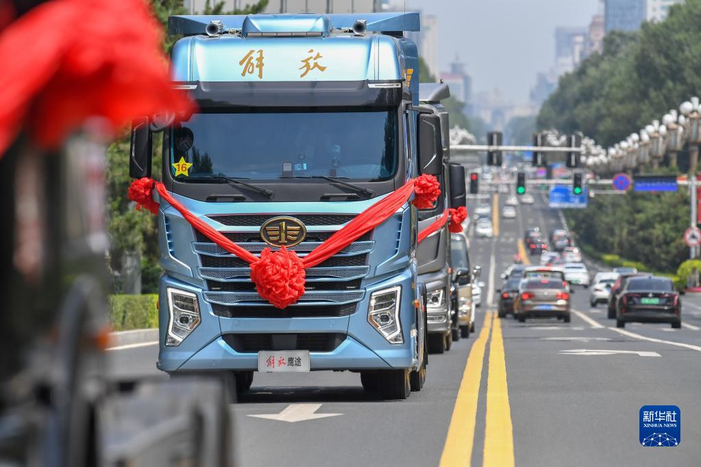 新華全媒+丨70年7代車(chē)——從解放卡車(chē)“七世同堂”巡游回望“車(chē)輪滾滾”舊時(shí)光