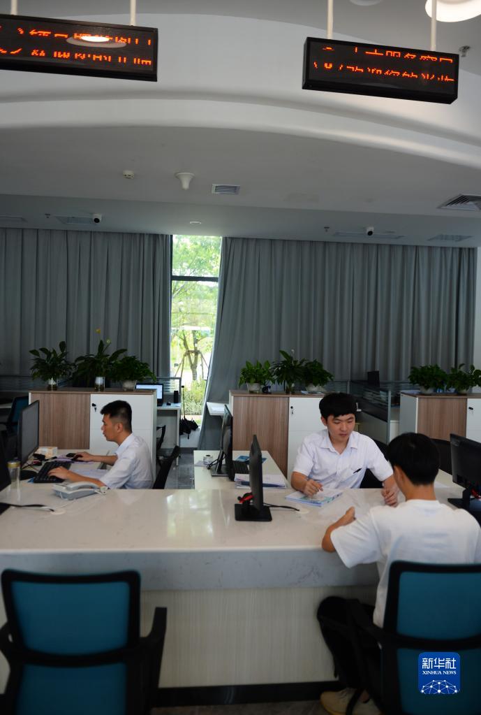 6月26日,工作人員在文昌國際航天城現場(chǎng)辦理審批業(yè)務(wù)。為提升工作效率,文昌國際航天城審批服務(wù)大廳可現場(chǎng)辦理企業(yè)注冊、人才引進(jìn)等申請許可。