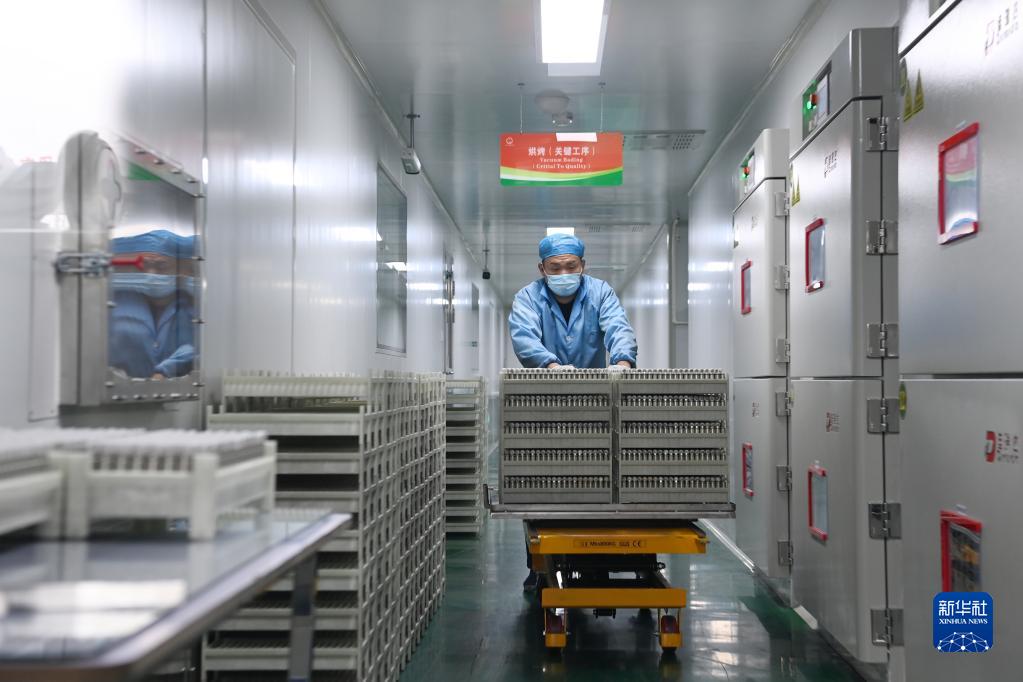 6月27日,在位于金昌經(jīng)濟技術(shù)開(kāi)發(fā)區的甘肅金宏翔新能源有限公司,工人在18650電池生產(chǎn)線(xiàn)上作業(yè)。