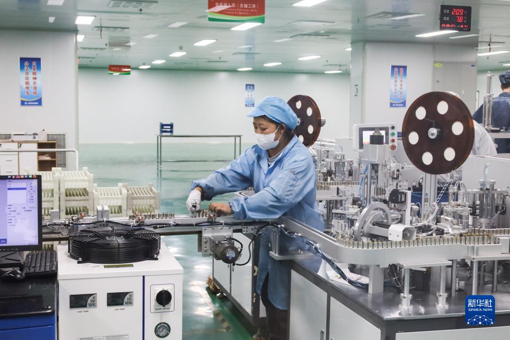 6月27日,在位于金昌經(jīng)濟技術(shù)開(kāi)發(fā)區的甘肅金宏翔新能源有限公司,工人在18650電池生產(chǎn)線(xiàn)上作業(yè)。