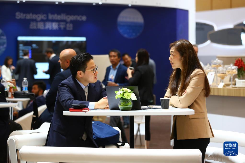 6月28日,與會(huì )者在論壇設置的新領(lǐng)軍者村內交流。