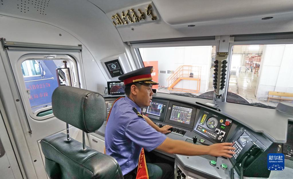 6月28日,“毛澤東號”機車(chē)駕駛員在介紹自動(dòng)化駕駛系統。新華社記者 李欣 攝