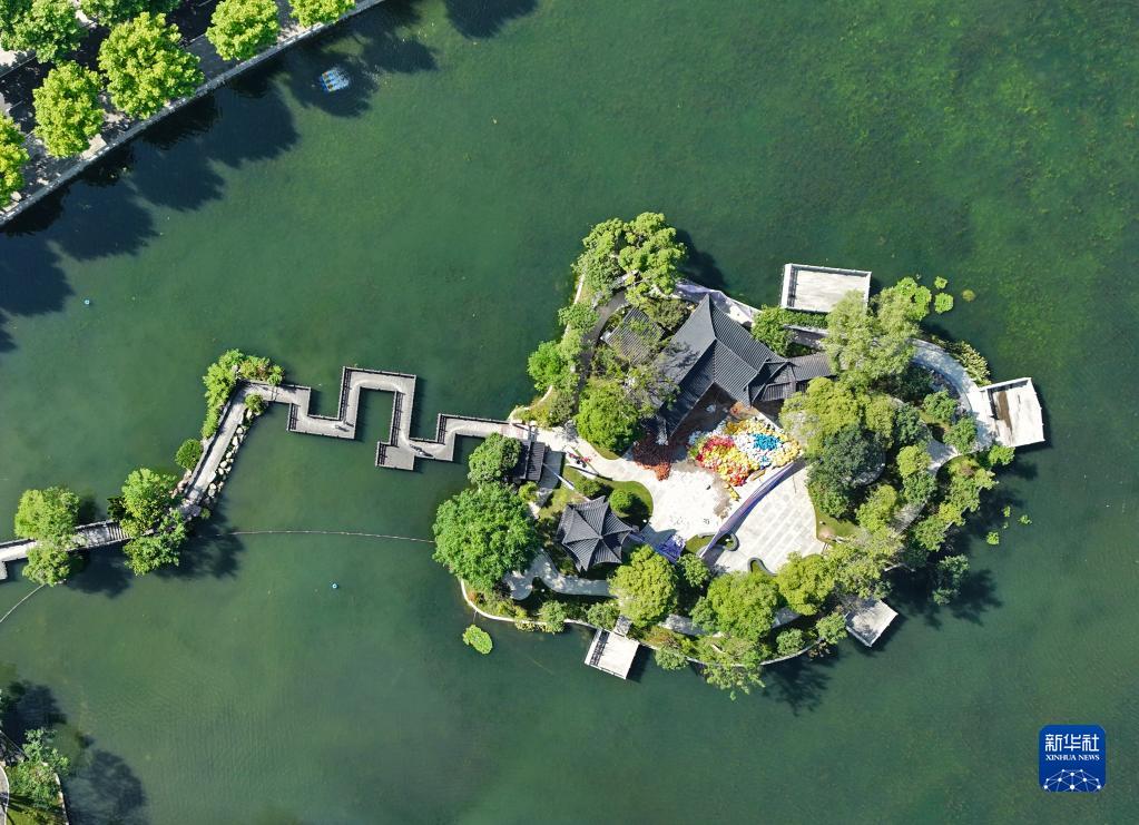 6月28日拍攝的井岡山挹翠湖公園(無(wú)人機照片)。