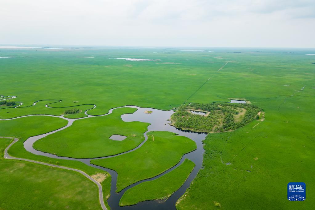 這是6月29日拍攝的黑龍江扎龍國家級自然保護區景色(無(wú)人機照片)。