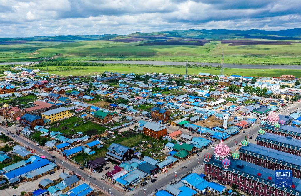 6月29日拍攝的蒙兀室韋蘇木風(fēng)光(無(wú)人機照片)。