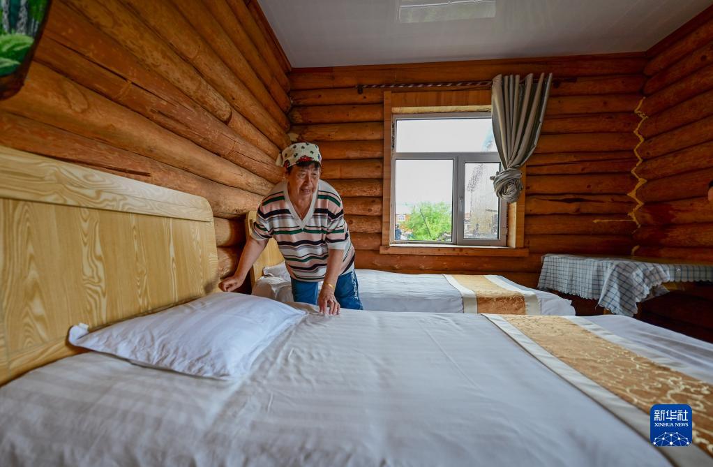 6月28日,卓婭在收拾客房。卓婭一家從2003年開(kāi)始經(jīng)營(yíng)家庭游,從最初的4間客房已經(jīng)發(fā)展為24間,還能提供旅游項目服務(wù)。