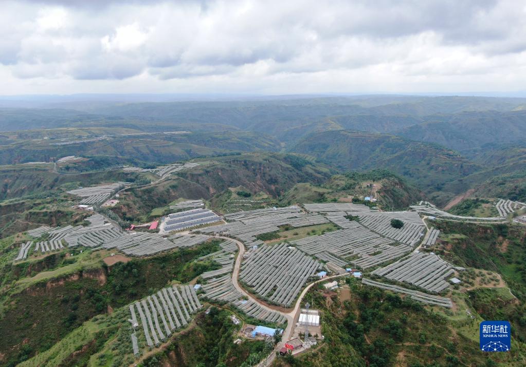 這是6月28日拍攝的延安市延川縣文安驛鎮梁家河村山地蘋(píng)果園(無(wú)人機照片)。