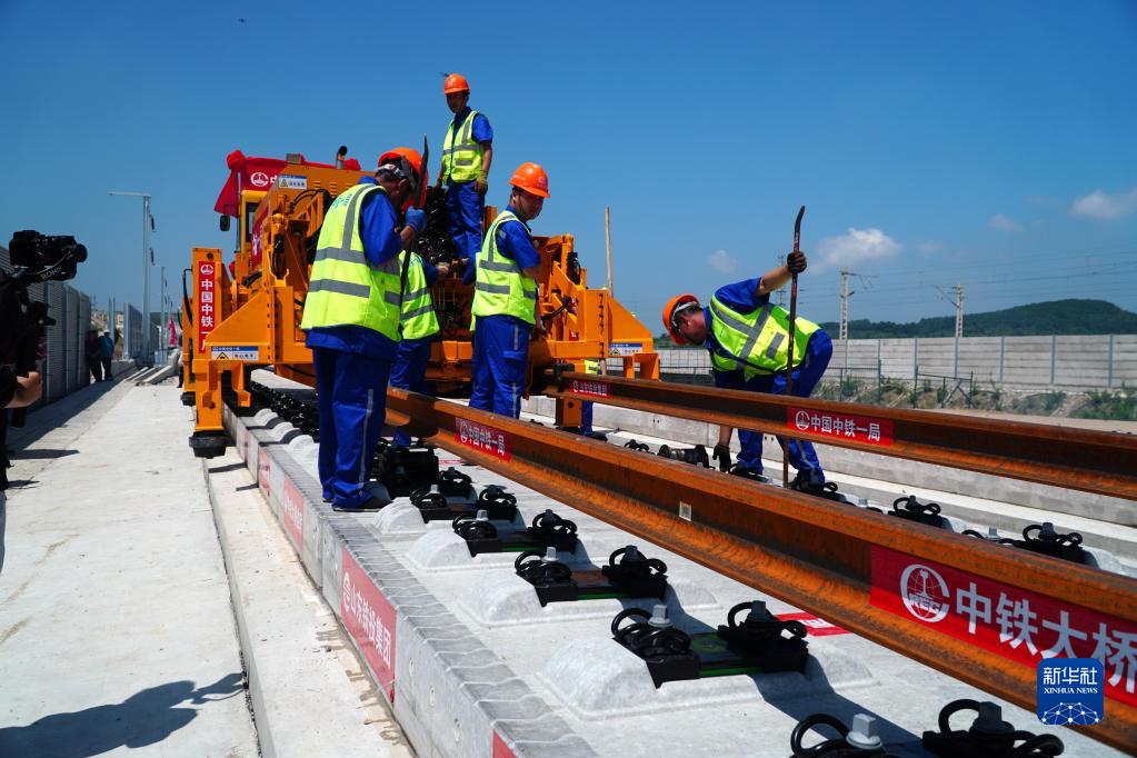 6月30日,在位于山東省煙臺市蓬萊區的濰煙高鐵施工現場(chǎng),中鐵一局鋪軌機組施工人員在進(jìn)行鋪軌作業(yè)。