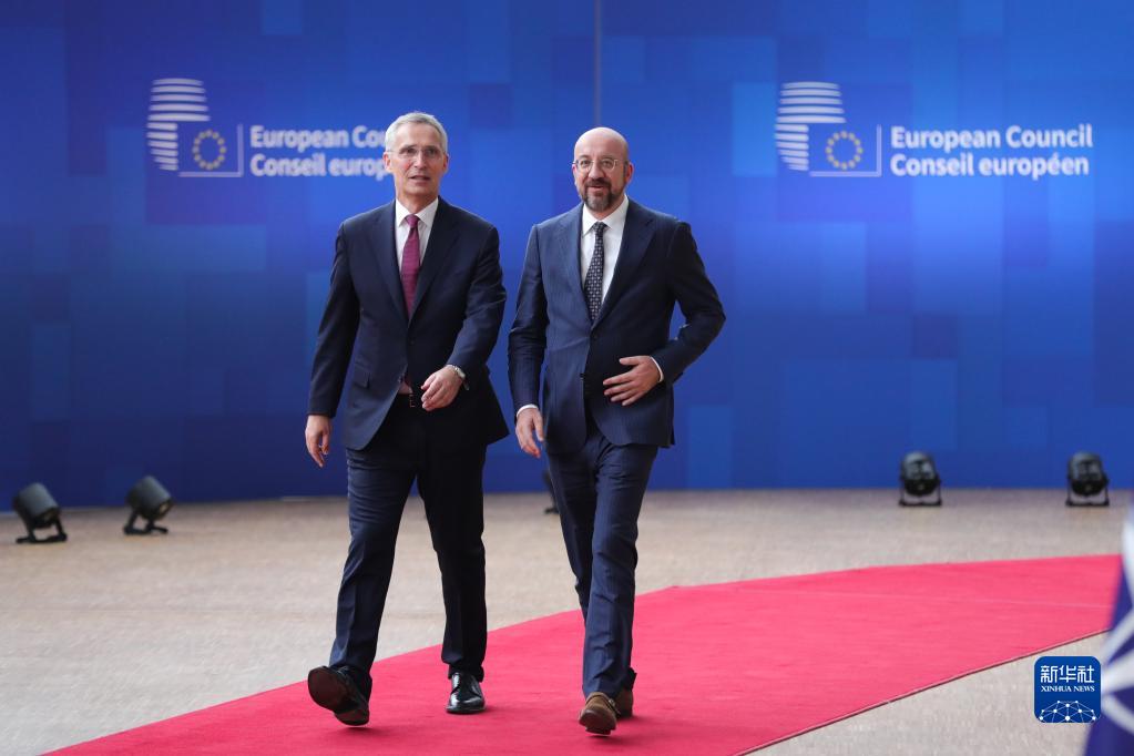 6月29日,在比利時(shí)布魯塞爾,歐洲理事會(huì )主席米歇爾(右)與北約秘書(shū)長(cháng)斯托爾滕貝格抵達歐盟總部準備出席歐盟峰會(huì )。