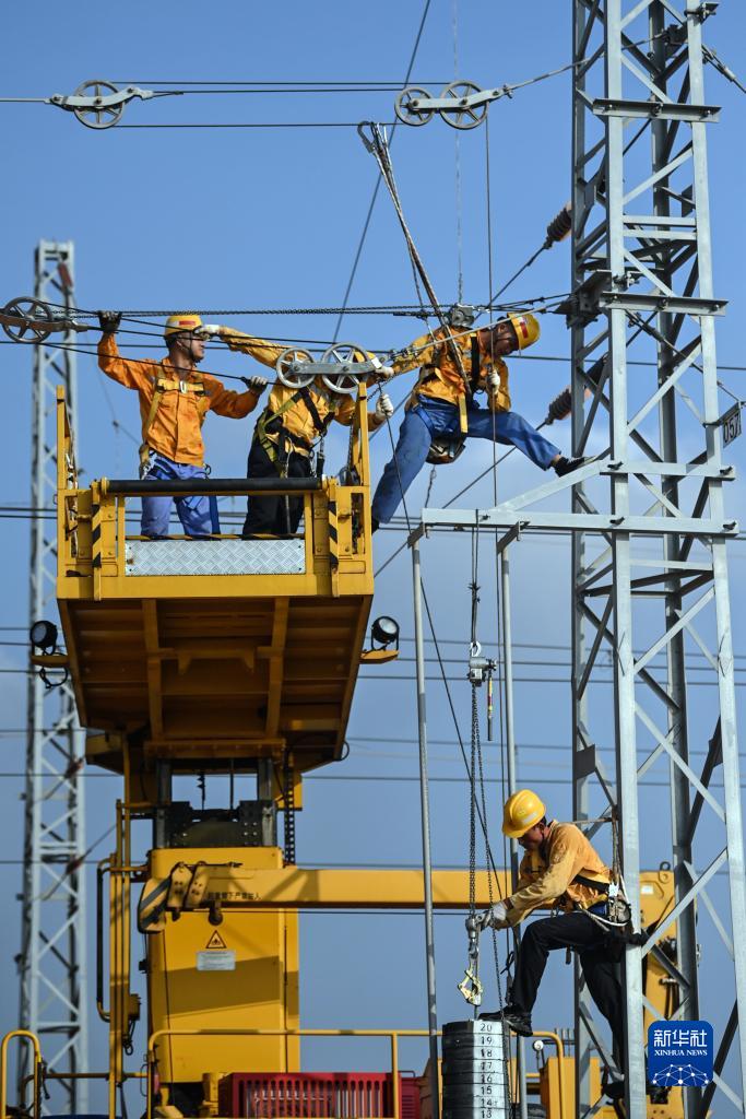 近日,國鐵南寧局沿海鐵路公司欽州供電段的接觸網(wǎng)工加大對管段內接觸網(wǎng)設備的檢修力度,為西部陸海新通道的暑運安全提供保障。