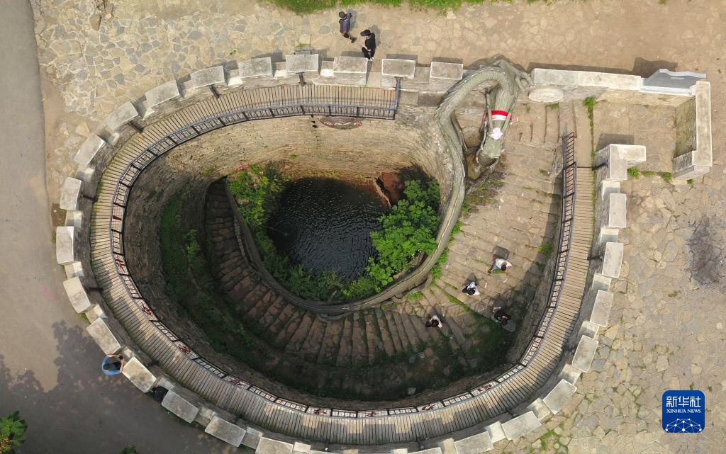 位于山東省新泰市龍廷鎮的掌平洼井(7月26日攝,無(wú)人機照片)。