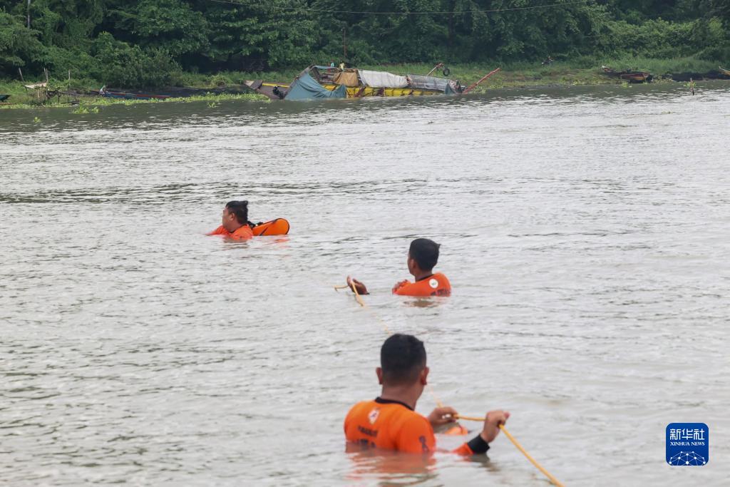 7月28日,在菲律賓黎剎省,菲律賓海岸警衛隊成員在傾覆船只事故現場(chǎng)開(kāi)展搜救行動(dòng)。