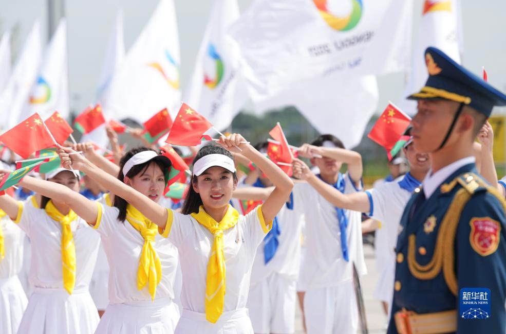 7月28日上午,來(lái)華出席成都大運會(huì )開(kāi)幕式并訪(fǎng)問(wèn)的毛里塔尼亞總統加茲瓦尼抵達四川省成都市。這是歡迎儀式現場(chǎng)。