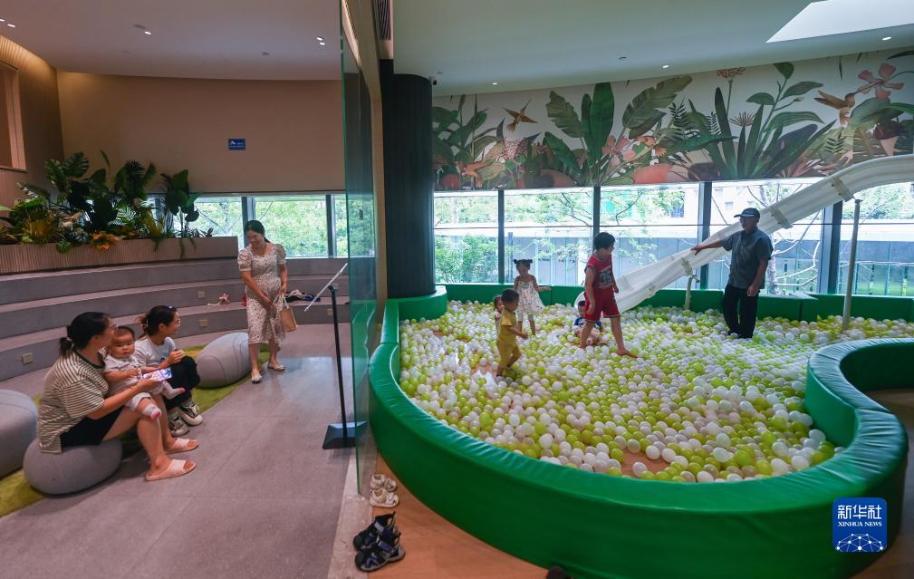 7月27日,在嘉興市南湖區余新鎮漁里未來(lái)社區“向日葵親子小屋”內,孩子們在家長(cháng)的陪伴下玩耍。