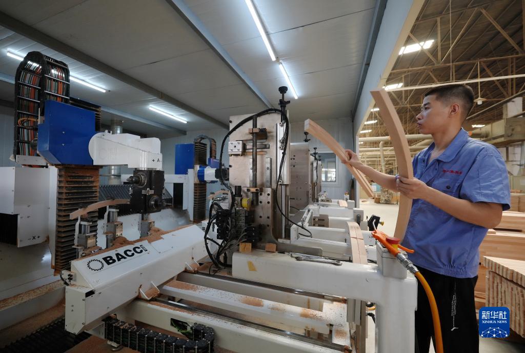 7月28日,工人在河北省唐山市蘆臺經(jīng)濟開(kāi)發(fā)區一家具企業(yè)的生產(chǎn)車(chē)間工作。