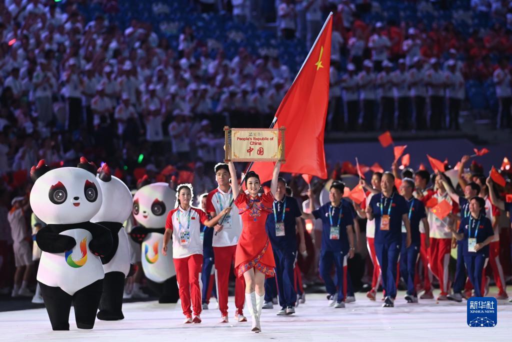 7月28日,中國大學(xué)生體育代表團在開(kāi)幕式上入場(chǎng)。