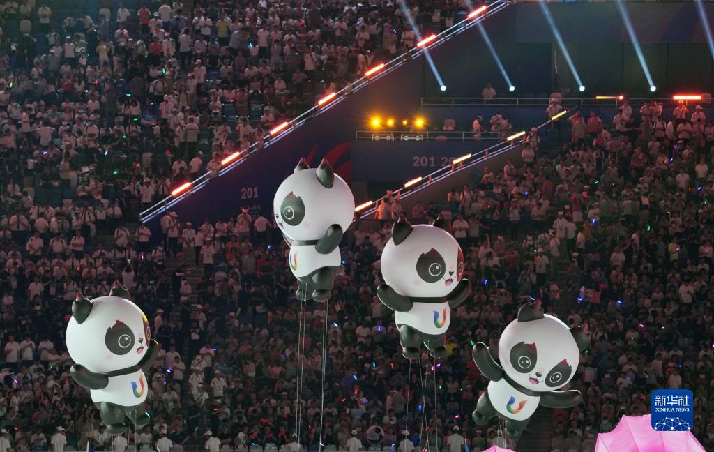 當晚,第31屆世界大學(xué)生夏季運動(dòng)會(huì )開(kāi)幕式在成都東安湖體育公園主體育場(chǎng)舉行。