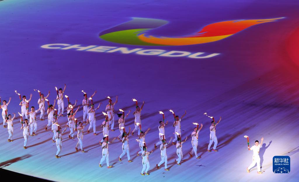 當晚,第31屆世界大學(xué)生夏季運動(dòng)會(huì )開(kāi)幕式在成都東安湖體育公園主體育場(chǎng)舉行。