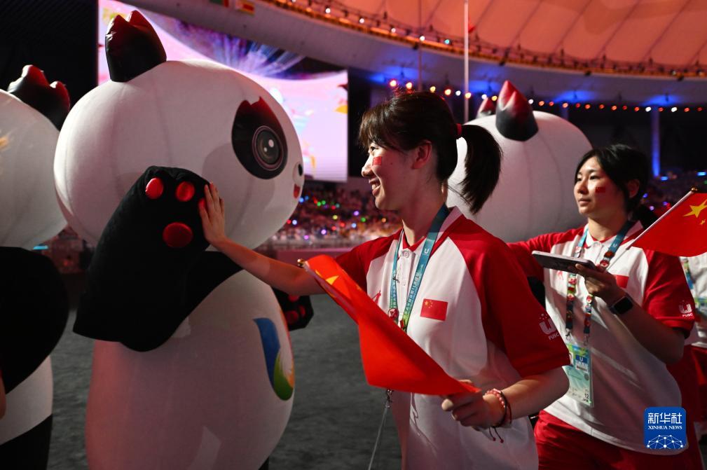 7月28日,中國大學(xué)生體育代表團在開(kāi)幕式上入場(chǎng)。