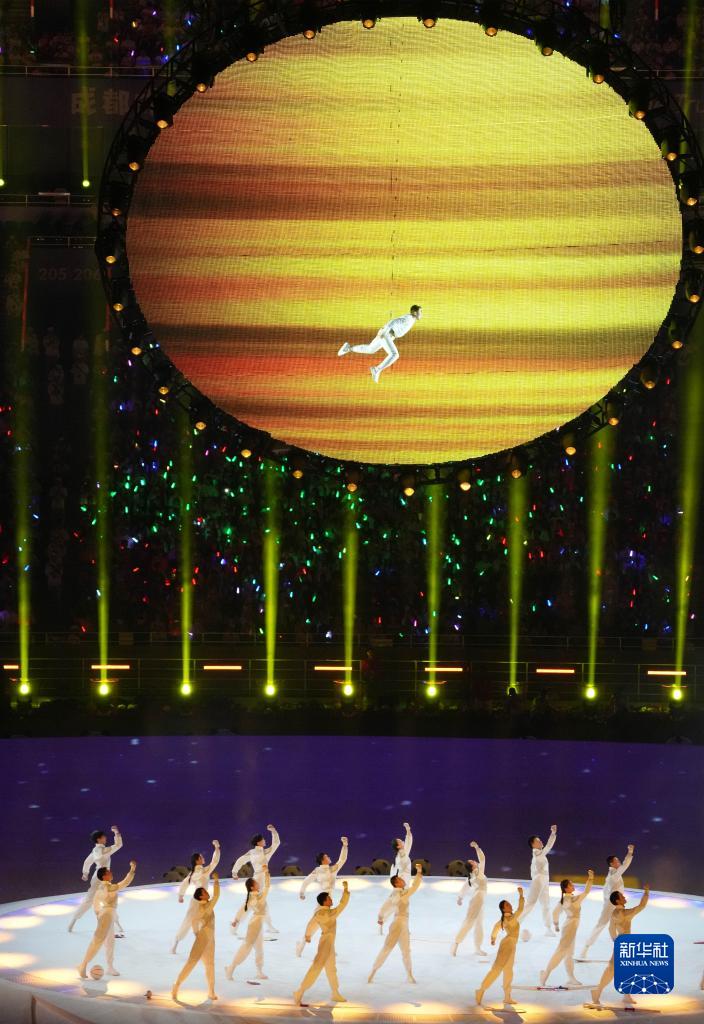 當晚,第31屆世界大學(xué)生夏季運動(dòng)會(huì )開(kāi)幕式在成都東安湖體育公園主體育場(chǎng)舉行。