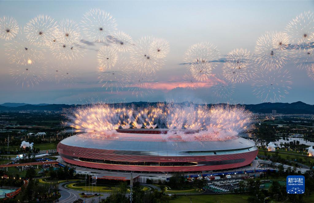 當晚,第31屆世界大學(xué)生夏季運動(dòng)會(huì )開(kāi)幕式在成都東安湖體育公園主體育場(chǎng)舉行。