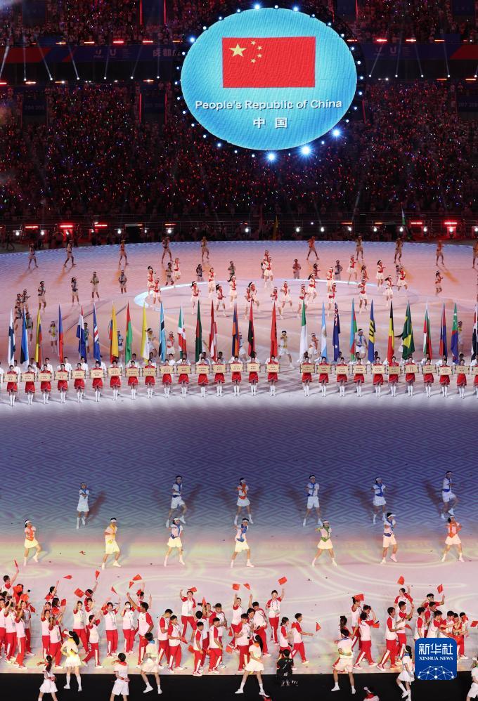 7月28日,中國大學(xué)生體育代表團在開(kāi)幕式上入場(chǎng)。