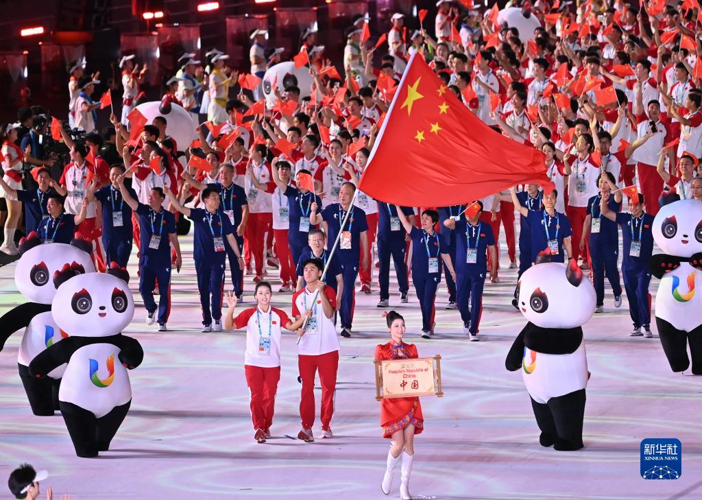 7月28日,中國大學(xué)生體育代表團在開(kāi)幕式上入場(chǎng)。