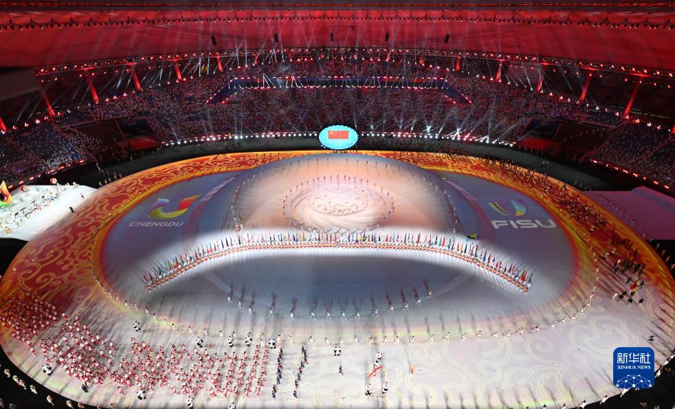 當晚,第31屆世界大學(xué)生夏季運動(dòng)會(huì )開(kāi)幕式在成都東安湖體育公園主體育場(chǎng)舉行。