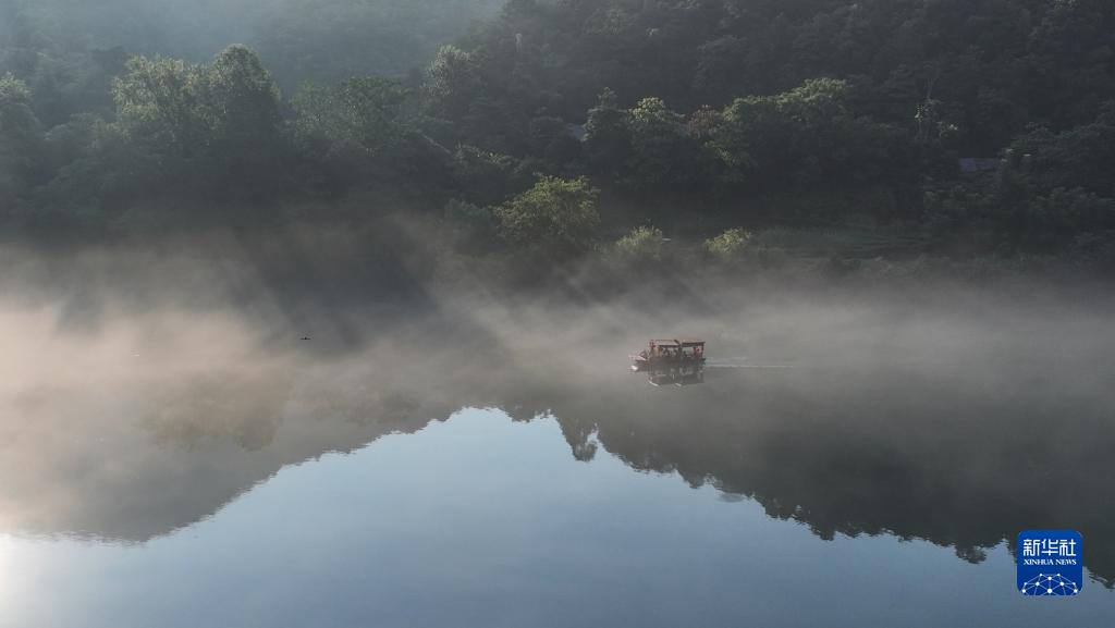 7月26日,游客在湖南省資興市小東江上乘船游覽(無(wú)人機照片)。