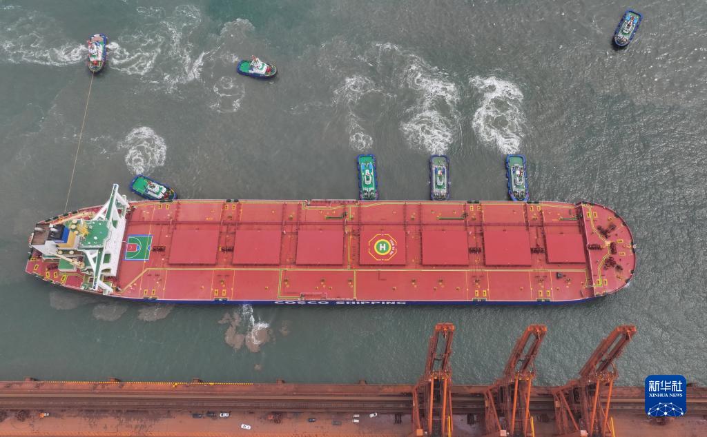 河北曹妃甸港區:40萬(wàn)噸“巨無(wú)霸”礦船滿(mǎn)載靠泊