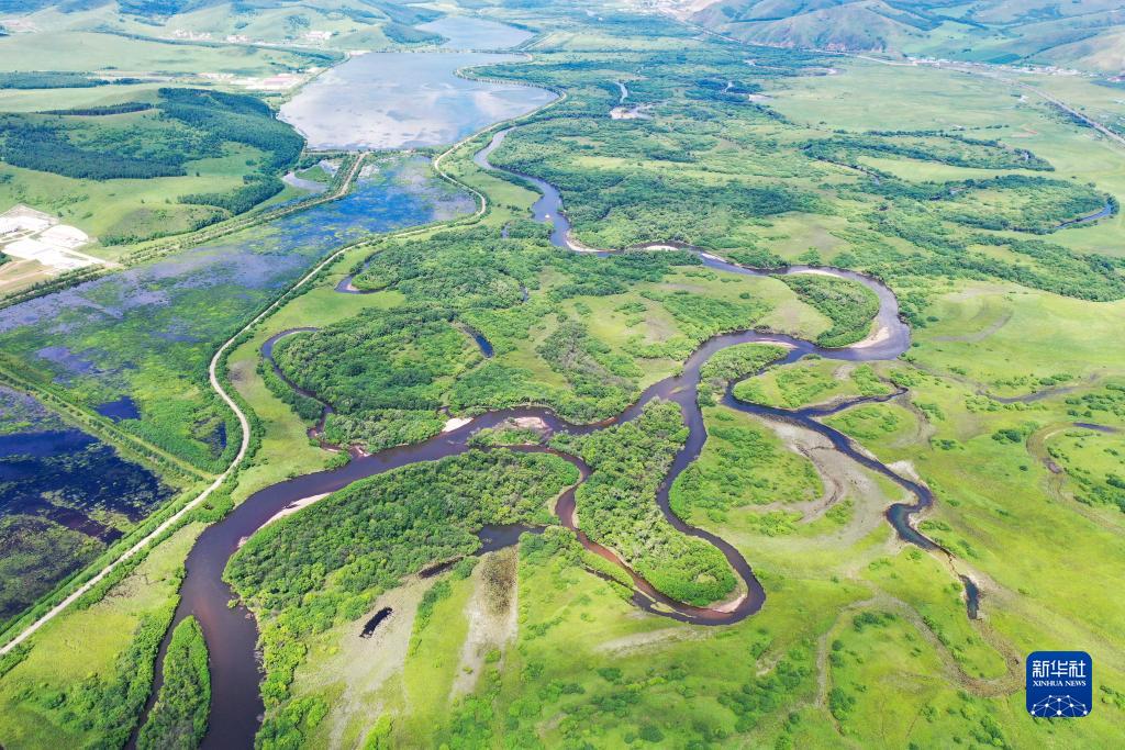 夏日時(shí)節,位于內蒙古自治區呼倫貝爾市牙克石市的免渡河國家濕地公園郁郁蔥蔥,景色優(yōu)美。