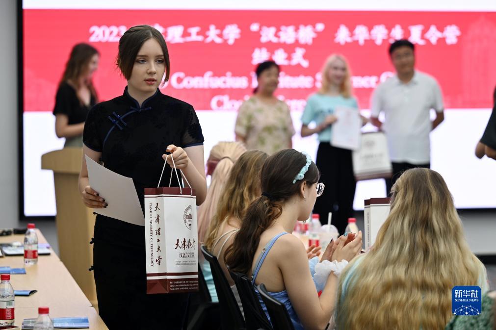 當日,2023天津理工大學(xué)“漢語(yǔ)橋”來(lái)華學(xué)生夏令營(yíng)結業(yè)式在天津理工大學(xué)辦公樓舉行。據了解,參加此次夏令營(yíng)的20多名學(xué)生和老師,來(lái)自波蘭密茨凱維奇大學(xué)和維斯瓦大學(xué),在為期14天的時(shí)間里,他們通過(guò)學(xué)習中文課程和參加文化體驗、參觀(guān)游覽等活動(dòng),領(lǐng)略中國文化魅力。
