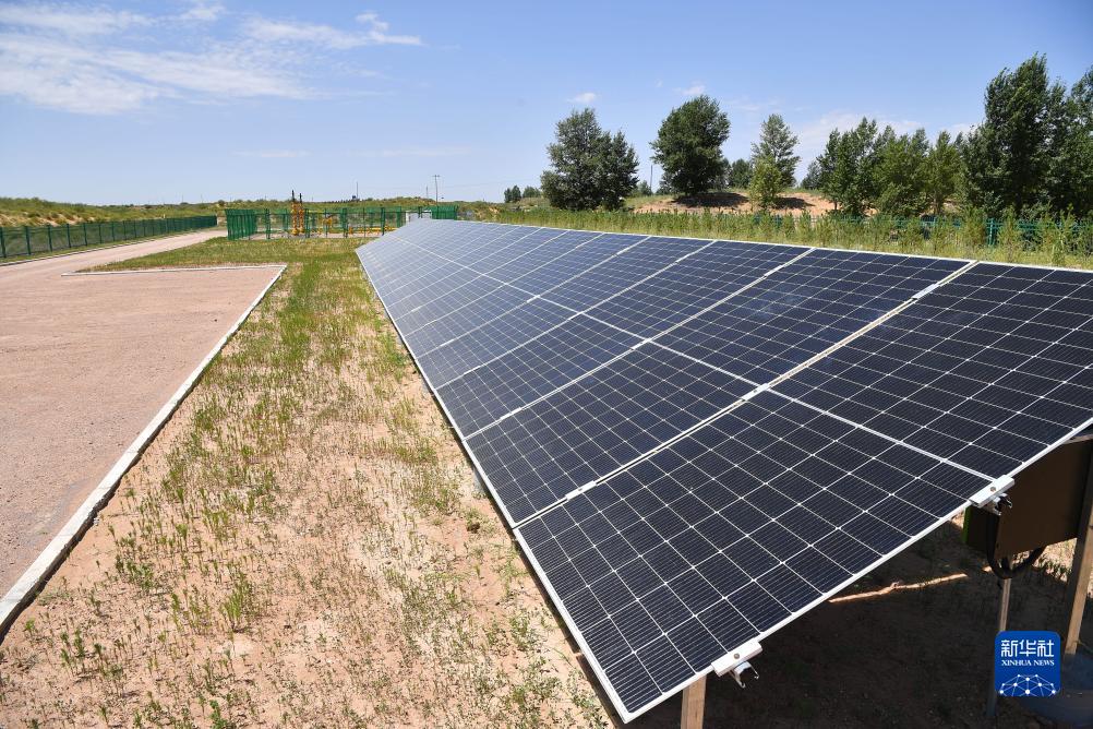 這是中國石油長(cháng)慶油田蘇里格氣田第三采氣廠(chǎng)作業(yè)二區,桃-2-4-18綠色零碳智能井組(7月24日攝)。該井組以光伏發(fā)電為依托,實(shí)現智能監控、智能柱塞、智能間開(kāi)、智能注劑為一體的零碳智能井場(chǎng)。