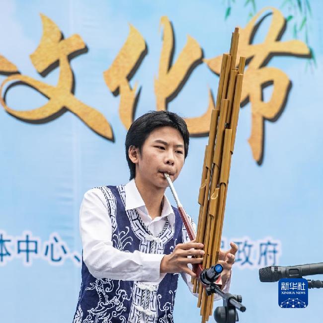 7月29日,在重慶市綦江區安穩鎮,當地居民身著(zhù)傳統服飾在“苗家伏羊節”上表演節目。