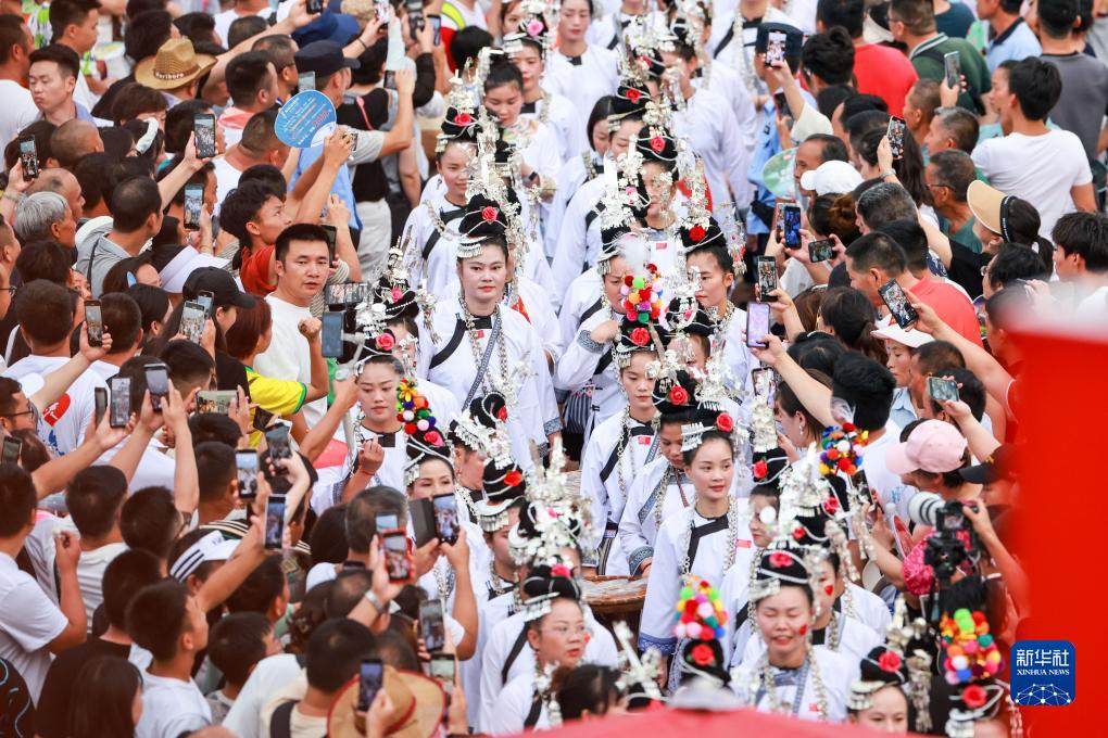 7月29日,人們身著(zhù)民族服裝進(jìn)入比賽現場(chǎng)。新華社記者 歐東衢 攝