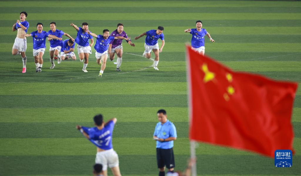 7月29日,獲得冠軍的車(chē)江一村隊球員在奪冠后慶祝。新華社記者 劉續 攝