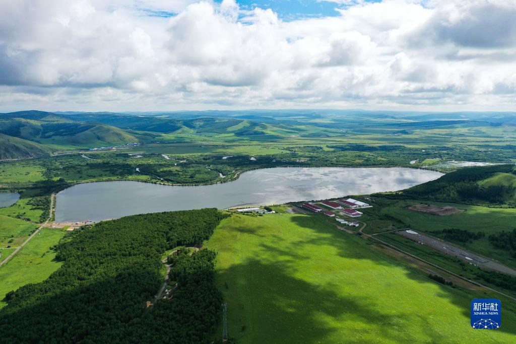 7月29日拍攝的牙克石市鳳凰山景區風(fēng)光(無(wú)人機照片)。