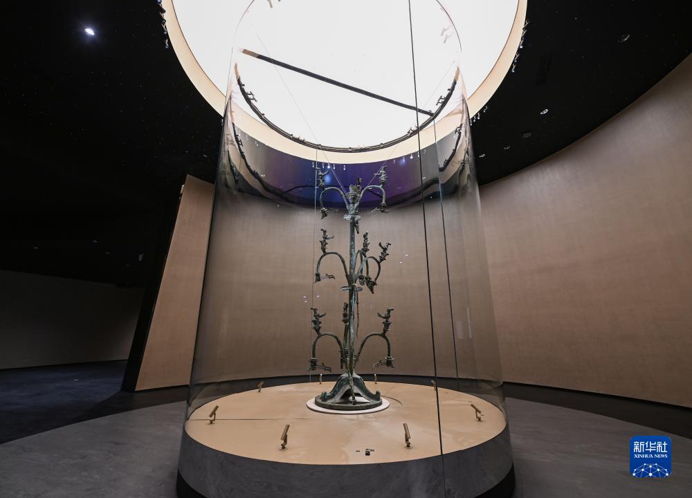 這是7月26日在三星堆博物館新館拍攝的重新展出的Ⅰ號大型銅神樹(shù)。
