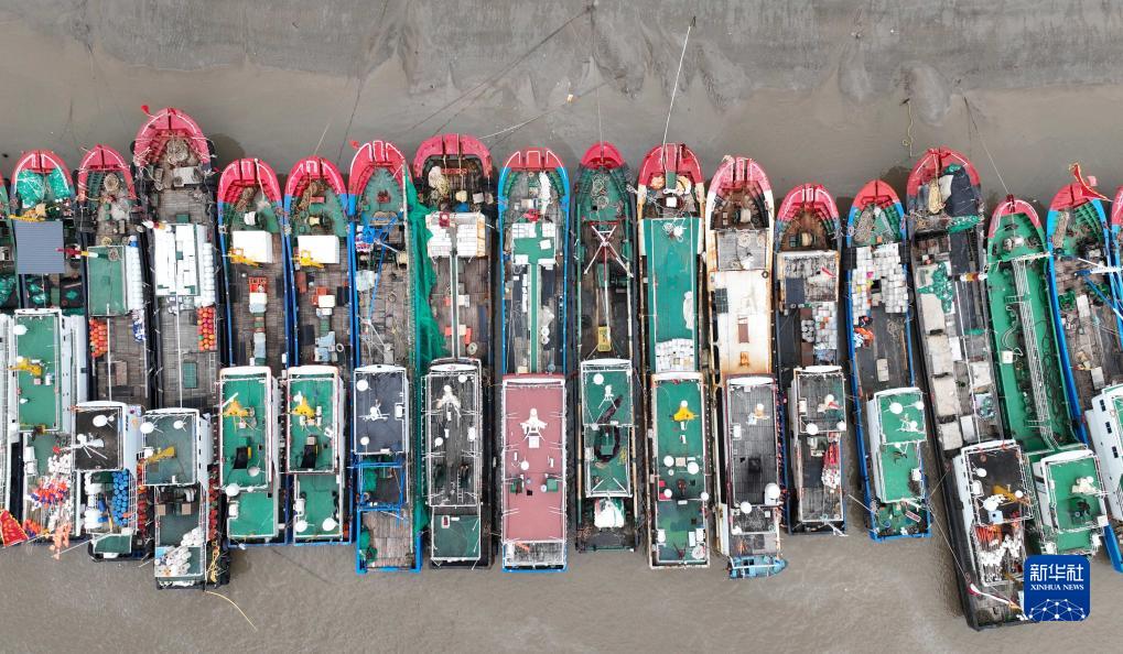 7月30日,漁船??吭谡憬≈凵绞衅胀訁^沈家門(mén)漁港(無(wú)人機照片)。